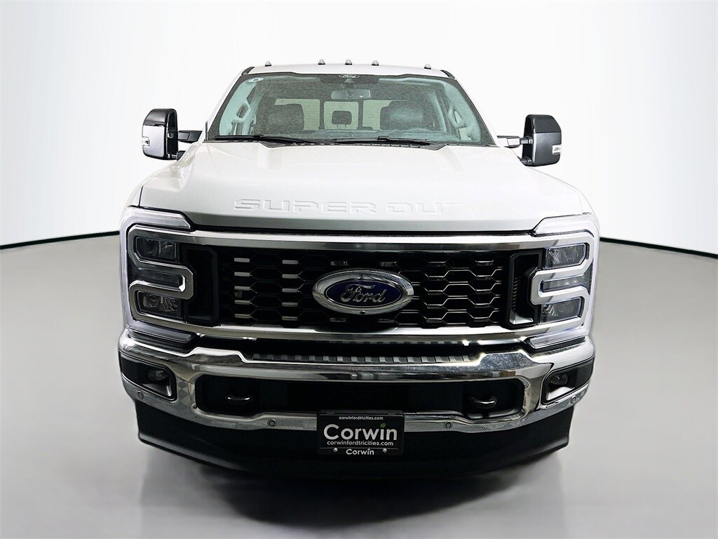 Command our diesel-driven 2025 Ford F-350 Super Duty Lariat Crew Cab 4X4 Dually with the Ultimate Package and conquer the tough jobs in Avalanche! Motivated by a TurboCharged 6.7 Liter High Output PowerStroke Diesel V8 serving up 500hp and 1200lb-ft of torque to a 10 Speed Automatic transmission. This Four Wheel Drive truck complements that muscle with a rugged suspension for an easy ride. Equipped for dealing with the daily grind, our bold Ford F-350 boasts the Ultimate Pack's power running boards, power sliding rear window, tailgate step, LED lighting, fog lamps, PowerScope trailer mirrors with built-in spotlights, chrome bumpers, a power-lock/remote-release tailgate, and alloy wheels.