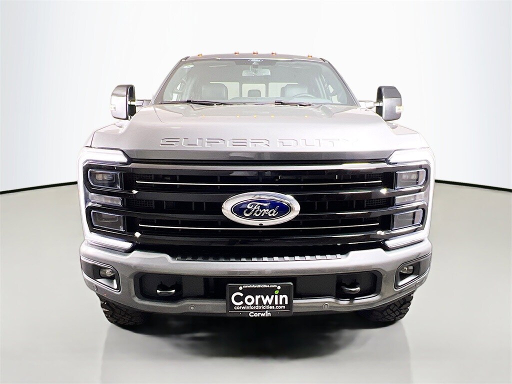 Our diesel powered 2025 Ford F-350 Super Duty Platinum Crew Cab 4X4 with the Tremor Pack handles the hustle and bustle of daily life with premium features and a powerful Carbonized Gray Metallic design! Motivated by a TurboCharged 6.7 Liter High Output PowerStroke Diesel V8 delivering 500hp and 1200lb-ft of torque to a 10 Speed Automatic transmission. This Four Wheel Drive truck also welcomes Tremor upgrades like a raised ride height, a locking rear differential, a limited-slip front differential, Rock Crawl/Trail Control modes, performance shocks, durable skid plates, water-fording vent tubes, and a bold Tremor decal. It's a great complement to our Ford F-350's dominating exterior design.