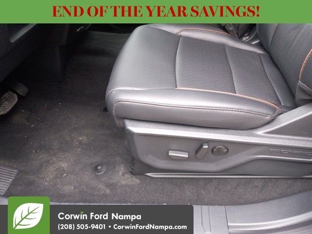 Our Lariat cabin levels up with the rewarding comfort of heated/ventilated leather power front seats, a heated leather power steering wheel, dual-zone automatic climate control, power-adjustable pedals, 120V/400W outlets, and a power sliding rear window. The interior is also like a mobile command post with a 12-inch touchscreen, a 12-inch driver display, connected navigation compatibility, wireless charging, WiFi compatibility, Apple CarPlay/Android Auto, Bluetooth, voice recognition, and B&O audio.