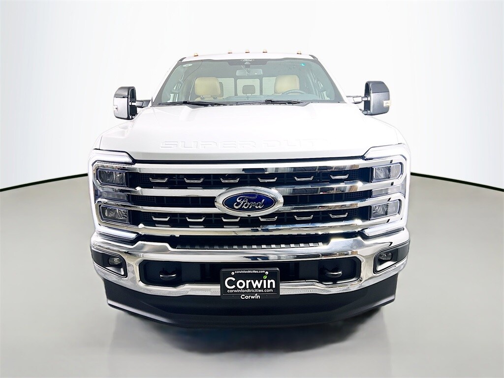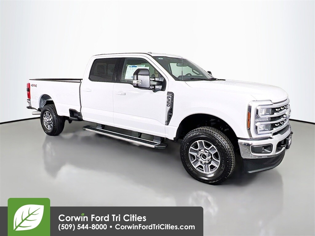 Take command of our 2025 Ford F-350 Super Duty Lariat Crew Cab 4X4 and conquer the tough jobs in Oxford White! Powered by a 7.3 Liter V8 serving up 430hp to a 10 Speed Automatic transmission with driver-selectable performance modes. This Four Wheel Drive truck complements that muscle with a rugged suspension for an easy ride. Equipped for dealing with the daily grind, our bold Ford F-350 boasts LED lighting, fog lamps, PowerScope trailer mirrors with built-in spotlights, chrome bumpers, a power-lock/remote-release tailgate, step bars, and alloy wheels.