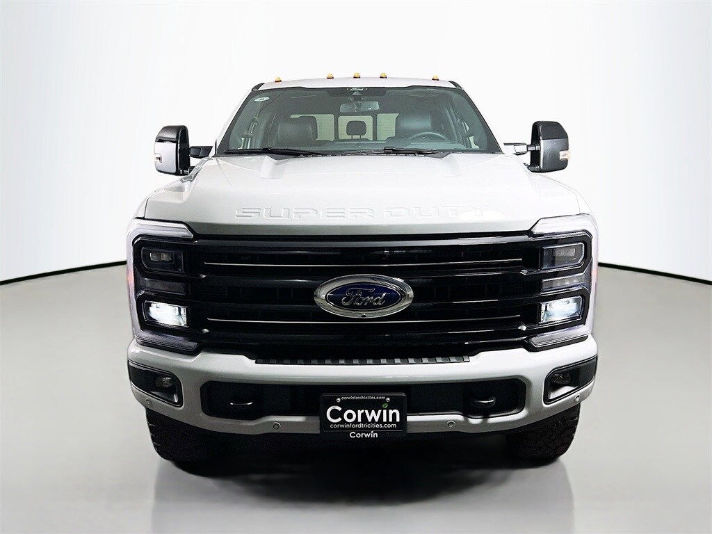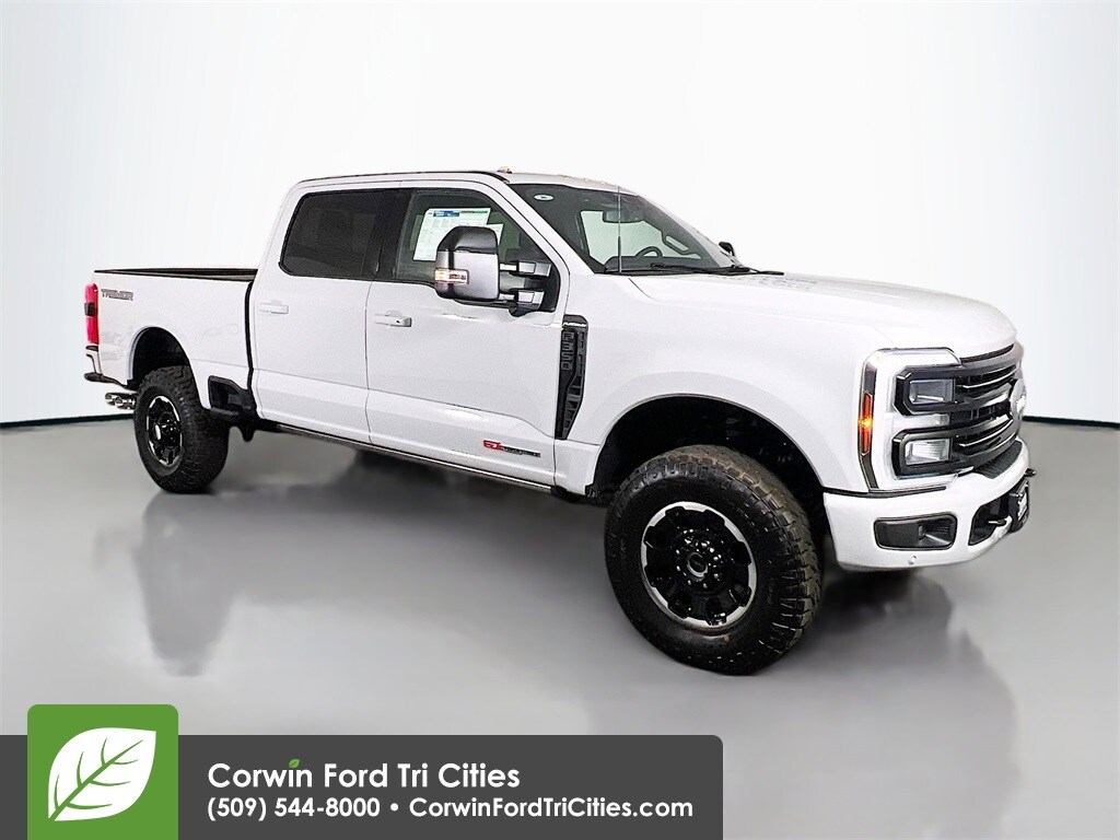 Our diesel powered 2025 Ford F-350 Super Duty Platinum Crew Cab 4X4 with the Tremor Pack handles the hustle and bustle of daily life with premium features and a powerful Avalanche design! Motivated by a TurboCharged 6.7 Liter High Output PowerStroke Diesel V8 delivering 500hp and 1200lb-ft of torque to a 10 Speed Automatic transmission. This Four Wheel Drive truck also welcomes Tremor upgrades like a raised ride height, a locking rear differential, a limited-slip front differential, Rock Crawl/Trail Control modes, performance shocks, durable skid plates, water-fording vent tubes, and a bold Tremor decal. It's a great complement to our Ford F-350's dominating exterior design.
