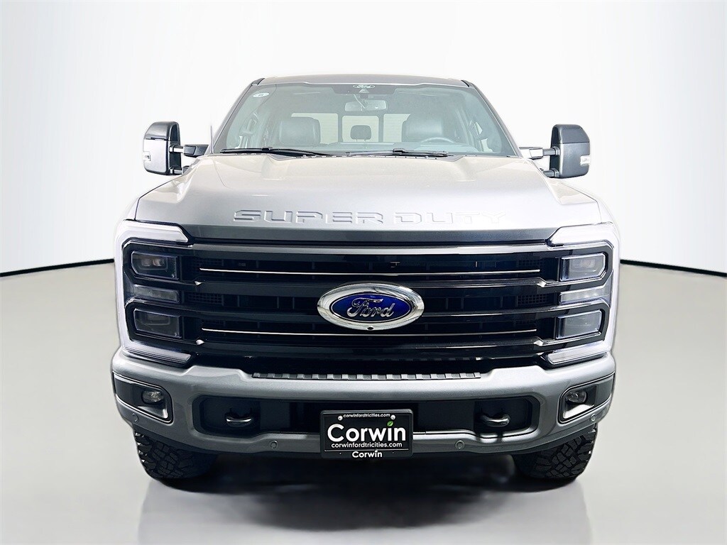 Our diesel powered 2025 Ford F-350 Super Duty Platinum Crew Cab 4X4 with the Tremor Pack handles the hustle and bustle of daily life with premium features and a powerful Carbonized Gray Metallic design! Motivated by a TurboCharged 6.7 Liter High Output PowerStroke Diesel V8 delivering 500hp and 1200lb-ft of torque to a 10 Speed Automatic transmission. This Four Wheel Drive truck also welcomes Tremor upgrades like a raised ride height, a locking rear differential, a limited-slip front differential, Rock Crawl/Trail Control modes, performance shocks, durable skid plates, water-fording vent tubes, and a bold Tremor decal. It's a great complement to our Ford F-350's dominating exterior design.