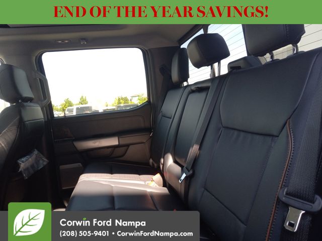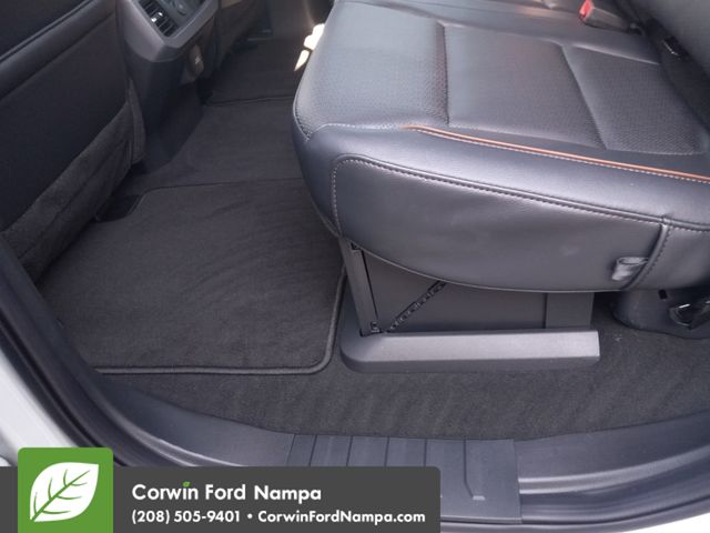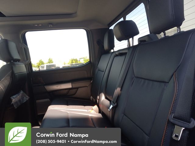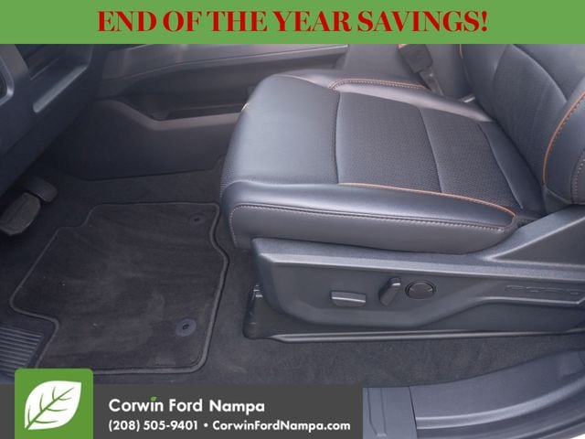 Our Lariat cabin levels up with the rewarding comfort of heated/ventilated leather power front seats, a heated leather power steering wheel, dual-zone automatic climate control, power-adjustable pedals, 120V/400W outlets, and a power sliding rear window. The interior is also like a mobile command post with a 12-inch touchscreen, a 12-inch driver display, connected navigation compatibility, wireless charging, WiFi compatibility, Apple CarPlay/Android Auto, Bluetooth, voice recognition, and B&O audio.