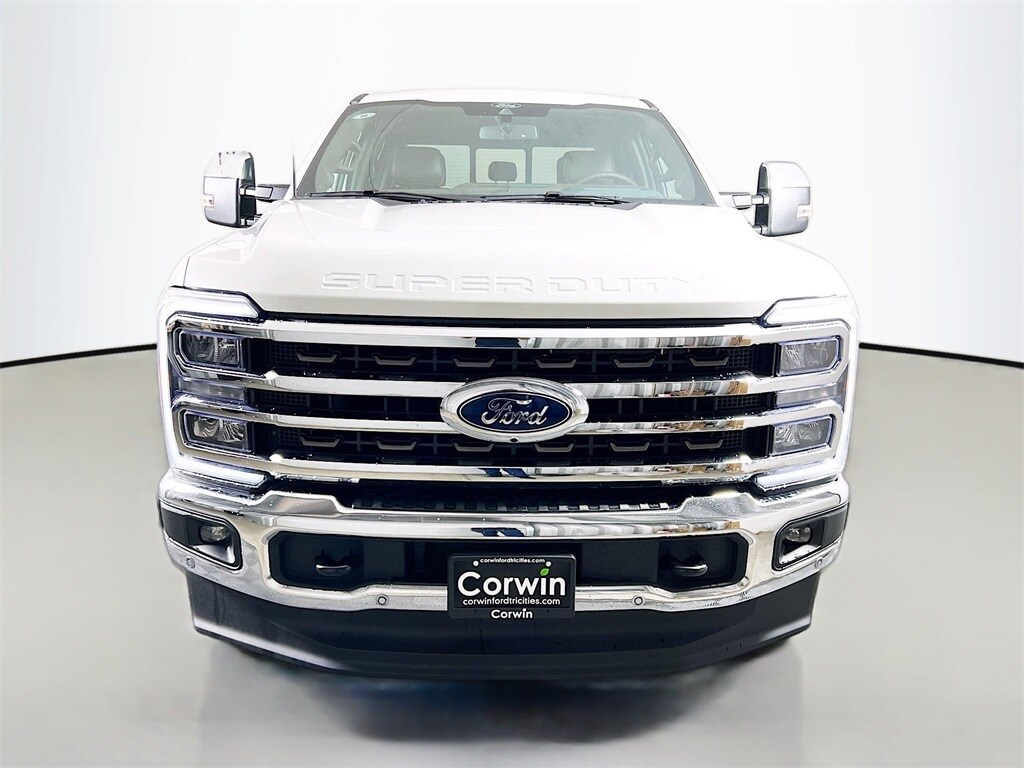 Our diesel-powered 2025 Ford F-350 Super Duty King Ranch Crew Cab 4X4 blends exclusive style and exhilarating strength in Star White Metallic Tri-coat! Motivated by a TurboCharged 6.7 Liter PowerStroke Diesel V8 supplying 475hp and 1050lb-ft of torque to a 10 Speed Automatic transmission. This Four Wheel Drive truck can easily handle tough conditions on the way to work, and a Pro Power Onboard generator lets you plug in your tools when you get there. Our Ford F-350 turns heads with LED lighting, fog lamps, a power tailgate, power running boards, alloy wheels, and PowerScope trailer mirrors.