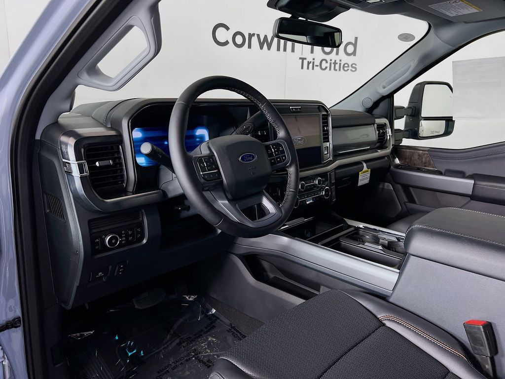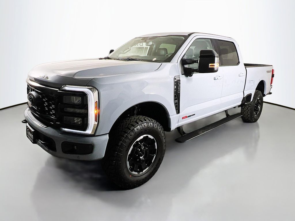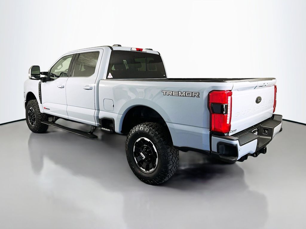 Command our Diesel driven 2025 Ford F-350 Super Duty Lariat Crew Cab 4X4 with the Black Appearance and Tremor Packages and conquer the tough jobs in Glacier Gray Metallic! Motivated by a TurboCharged 6.7 Liter High Output PowerStroke Diesel V8 serving up 500hp and 1200lb-ft of torque to a 10 Speed Automatic transmission. This Four Wheel Drive also welcomes our Tremor Pack for off-road upgrades like a front limited-slip differential, a rear locking diff, an increased ride height, performance shocks, water-fording vent tubes, robust skid plates, a spray-on bedliner, Rock Crawl/Trail Control modes, and enhanced style with off-road running boards, 18-inch alloy wheels, a twin panel sunroof, and exclusive graphics.