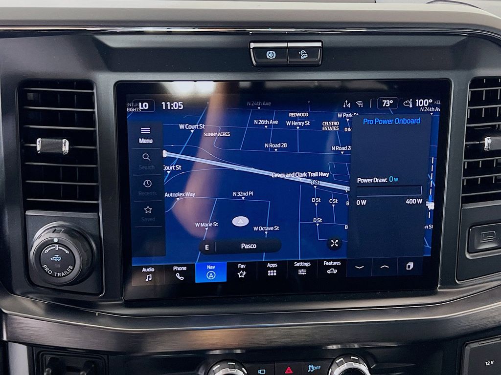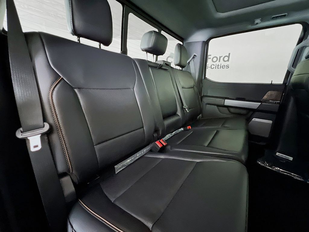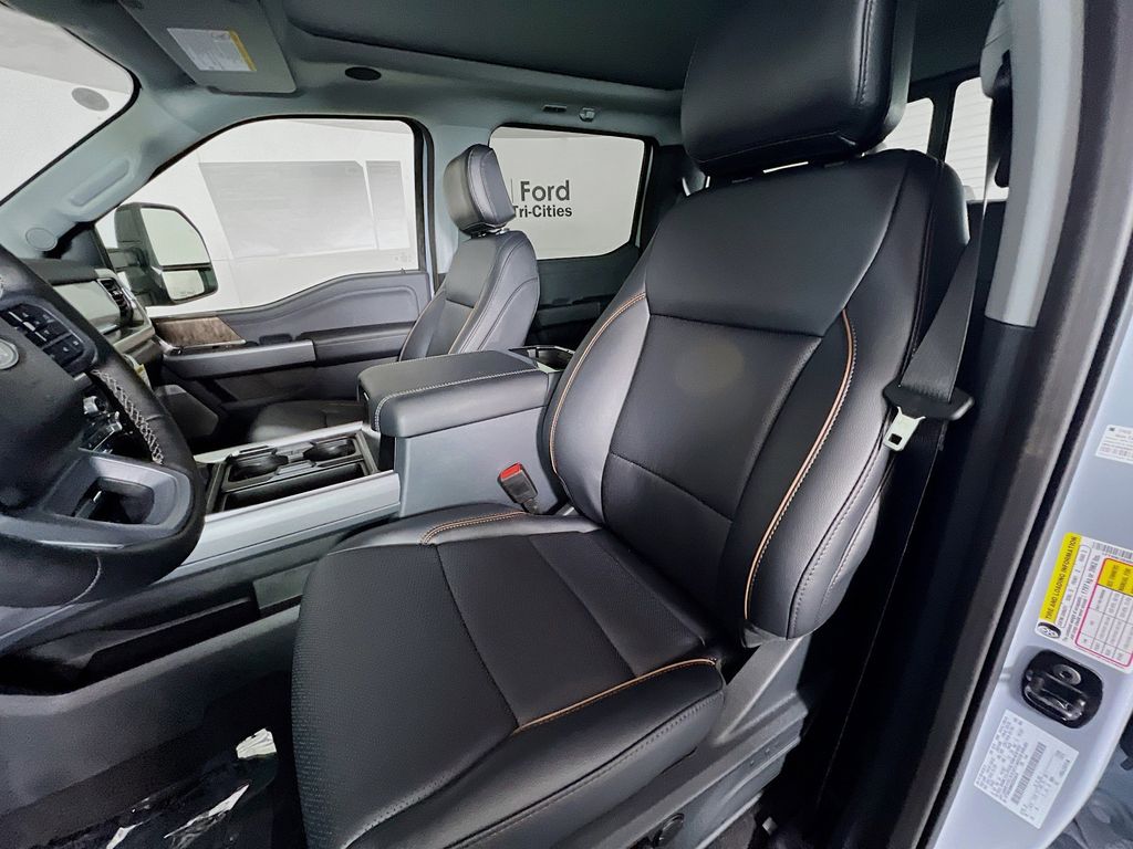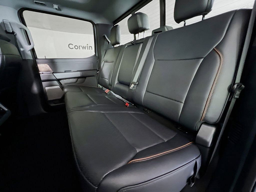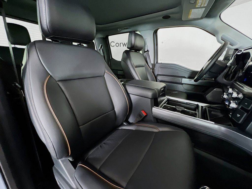 Our Lariat cabin levels up with the rewarding comfort of heated/ventilated leather power front seats, a heated leather power steering wheel, dual-zone automatic climate control, power-adjustable pedals, 120V/400W outlets, and a power sliding rear window. The interior resembles a mobile command post with a 12-inch touchscreen, a 12-inch driver display, connected navigation, wireless charging, WiFi compatibility, Apple CarPlay/Android Auto, Bluetooth, voice recognition, and B&O audio.