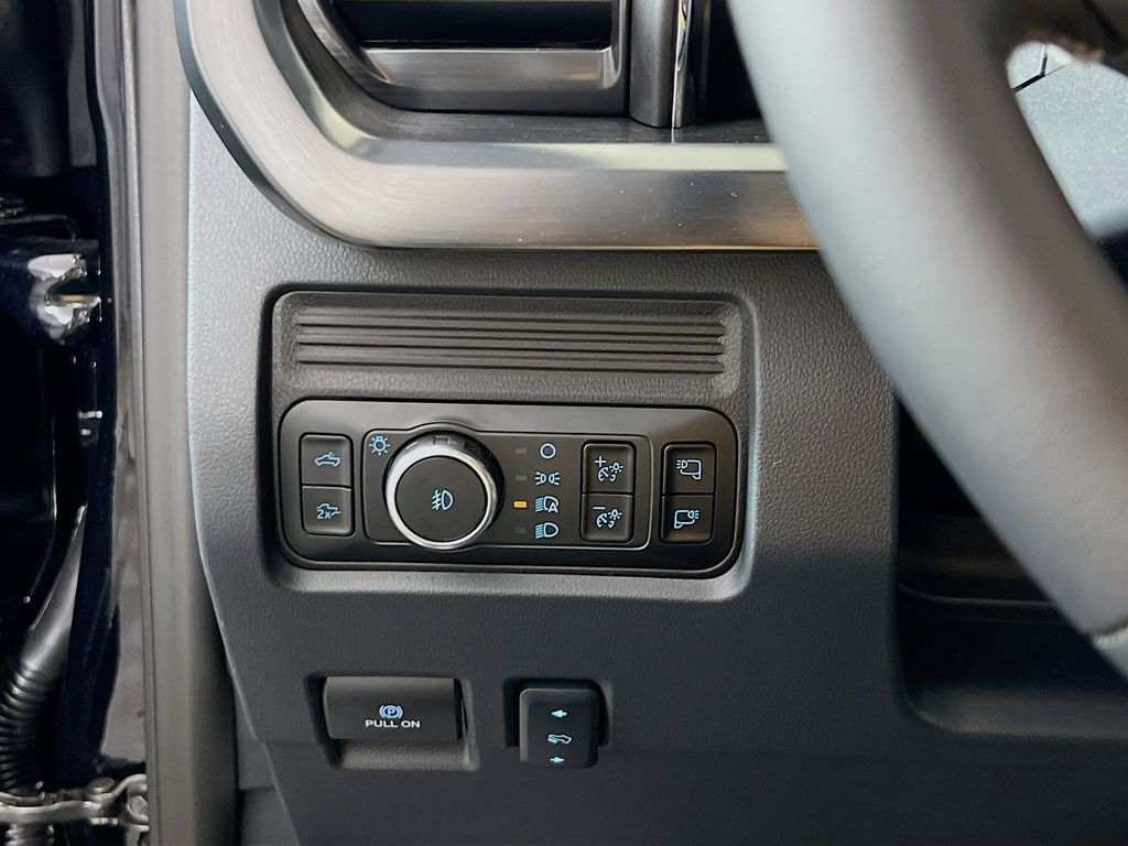 Our Lariat cabin levels up with the rewarding comfort of heated/ventilated leather power front seats, a heated leather power steering wheel, dual-zone automatic climate control, power-adjustable pedals, 120V/400W outlets, and a power sliding rear window. The interior is also like a mobile command post with a 12-inch touchscreen, a 12-inch driver display, connected navigation compatibility, wireless charging, WiFi compatibility, Apple CarPlay/Android Auto, Bluetooth, voice recognition, and B&O audio.