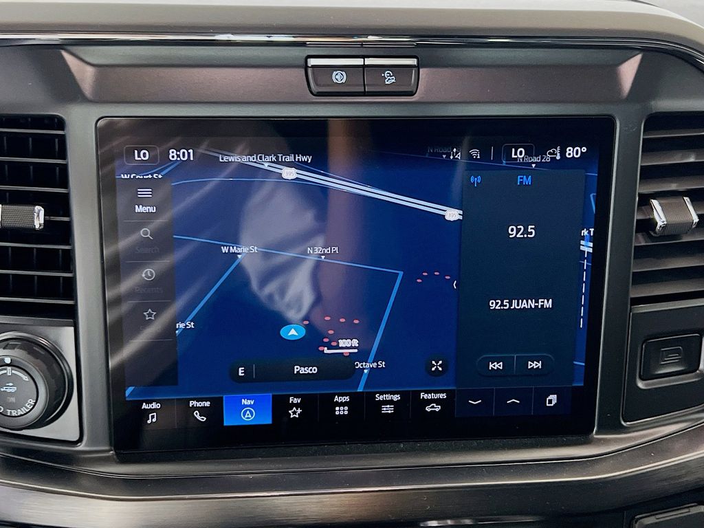 Our Lariat cabin levels up with the rewarding comfort of heated/ventilated leather power front seats, a heated leather power steering wheel, dual-zone automatic climate control, power-adjustable pedals, 120V/400W outlets, and a power sliding rear window. The interior resembles a mobile command post with a 12-inch touchscreen, a 12-inch driver display, connected navigation, wireless charging, WiFi compatibility, Apple CarPlay/Android Auto, Bluetooth, voice recognition, and B&O audio.