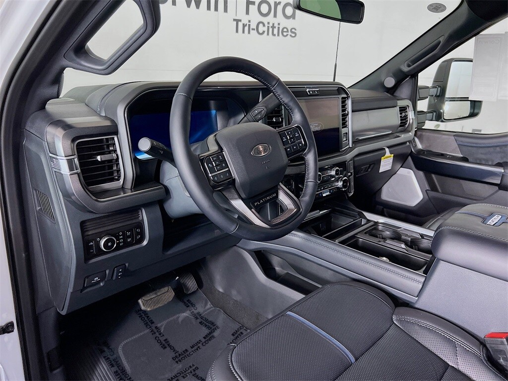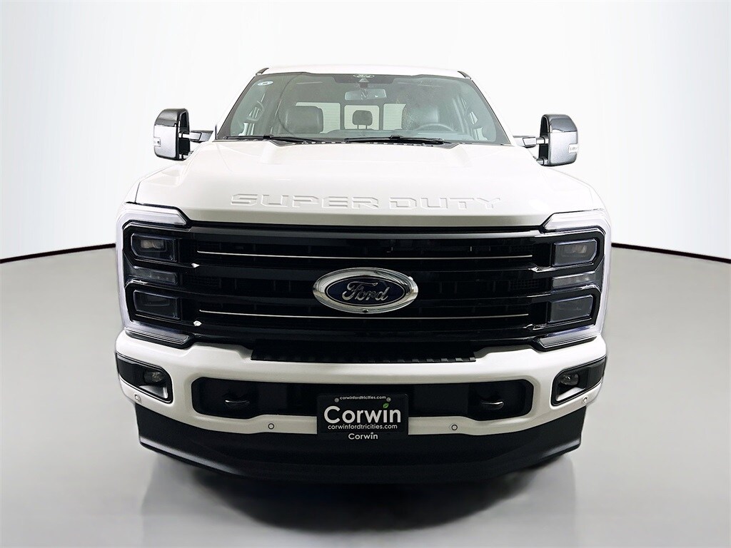 Our diesel-driven 2025 Ford F-350 Super Duty Platinum Crew Cab 4X4 with the FX4 Off-Road Package combines raw power and refined luxury in Star White Metallic Tri-coat! Motivated by a TurboCharged 6.7 Liter PowerStroke Diesel V8 delivering 475hp and 1050lb-ft of torque to a 10 Speed Automatic transmission. That lets our Four Wheel Drive truck tow, haul, and take on your world without sweat. A mighty grille helps you make a bold impression with Ford F-350 details like LED lighting, fog lamps, power running boards, a power tailgate, a Pro Power Onboard generator, and striking alloy wheels.
