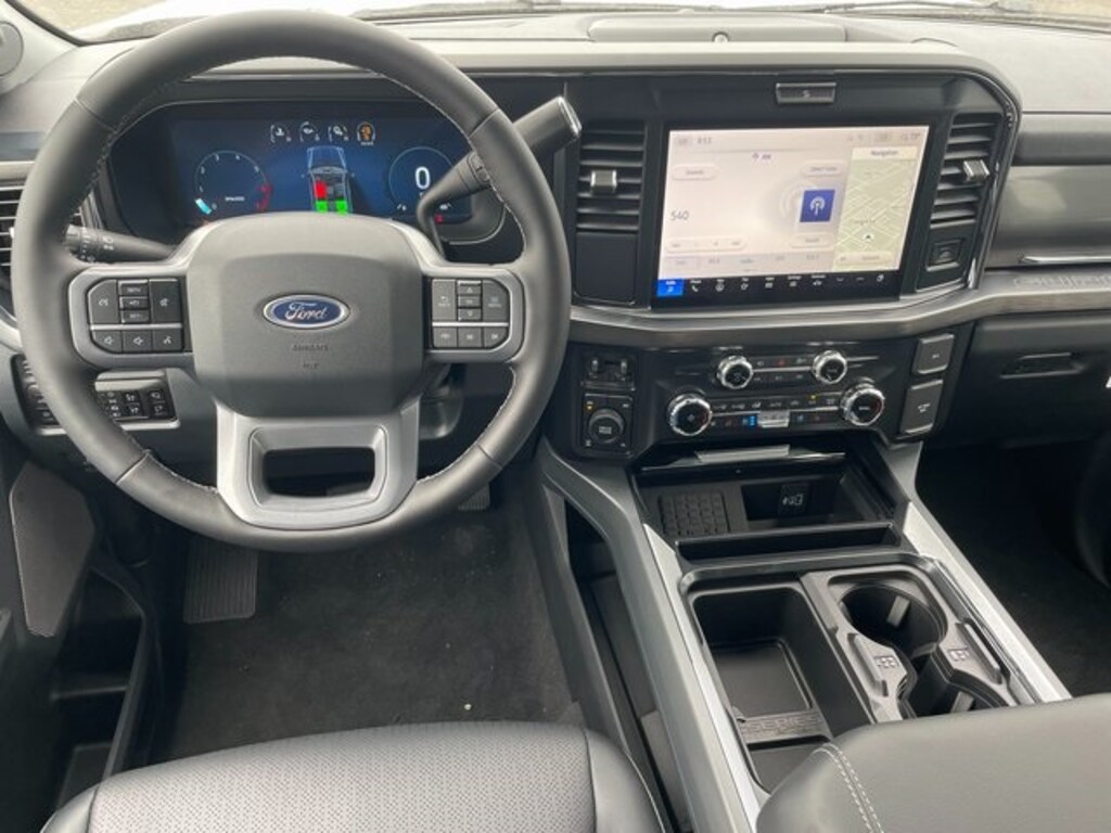 Taking command of your days from our Lariat cabin is easy with heated/ventilated leather power front seats, a heated leather power steering wheel, dual-zone automatic climate control, power-adjustable pedals, 120V/400W outlets, and a power sliding rear window. The interior is also like a mobile command post with a 12-inch touchscreen, a 12-inch driver display, connected navigation compatibility, wireless charging, WiFi compatibility, Apple CarPlay/Android Auto, Bluetooth, voice recognition, and B&O audio.