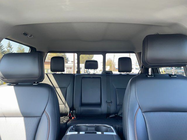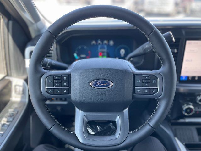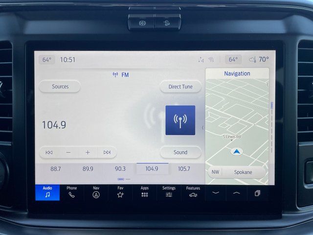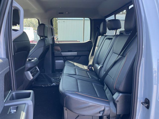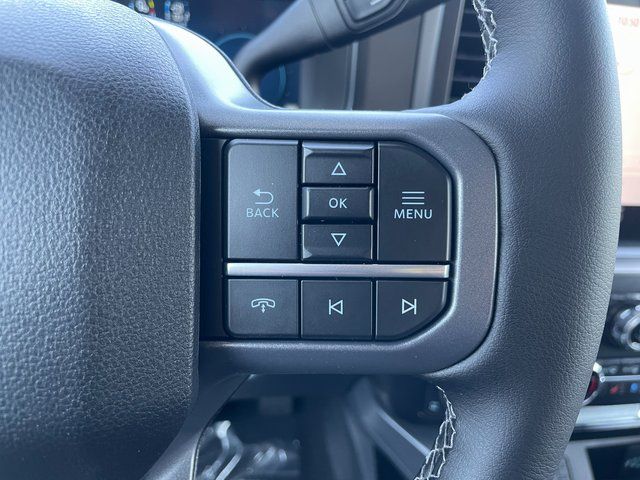 Our Lariat cabin welcomes you with heated/ventilated leather power front seats, a heated leather power steering wheel, dual-zone automatic climate control, power-adjustable pedals, 120V/400W outlets, and a power sliding rear window. The interior resembles a mobile command post with a 12-inch touchscreen, a 12-inch driver display, connected navigation, wireless charging, WiFi compatibility, Apple CarPlay/Android Auto, Bluetooth, voice recognition, and B&O audio.