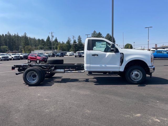 Our 2025 Ford F-350 XL Regular Cab 4X4 Dually Chassis Cab with the Chrome Package is powerful and productive in Oxford White! Motivated by a 7.3 Liter V8 serving up 430hp to a 10 Speed TorqShift Automatic transmission engineered for hard use and heavy-duty pulling. This Rear Wheel Drive truck also rewards you with comfortable handling and rewarding maneuverability for long days on the job. Our F-350's tough, no-nonsense design makes the grade with a bold black grille, jewel-effect halogen headlamps, heated power trailer-tow mirrors, fog lights, tow hooks, and matching accents.