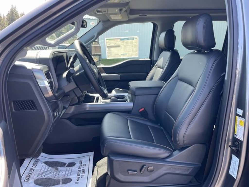 Our Lariat cabin levels up with the rewarding comfort of heated/ventilated leather power front seats, a heated leather power steering wheel, dual-zone automatic climate control, power-adjustable pedals, 120V/400W outlets, and a power sliding rear window. The interior is also like a mobile command post with a 12-inch touchscreen, a 12-inch driver display, connected navigation compatibility, wireless charging, WiFi compatibility, Apple CarPlay/Android Auto, Bluetooth, voice recognition, and B&O audio.