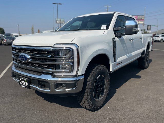 Recent Arrival! Our diesel-powered 2025 Ford F-350 King Ranch Crew Cab 4X4 with the Tremor Off-Road Package delivers what you demand in a truck backed by a bold Star White Metallic Tri-coat! Motivated by a TurboCharged 6.7 Liter High Output PowerStroke Diesel V8 supplying 500hp and 1200lb-ft of torque to a 10 Speed Automatic transmission. This Four Wheel Drive truck can easily handle tough conditions on the way to work, and a Pro Power Onboard generator lets you plug in your tools when you get there. Our Ford F-350 turns heads with our Tremor Pack's textured matte-finished off-road running boards, Tremor decals, 18-inch ebony black wheels, skid plates, pro power onboard, twin-panel sunroof, LED lighting, fog lamps, a power tailgate, and PowerScope trailer mirrors.