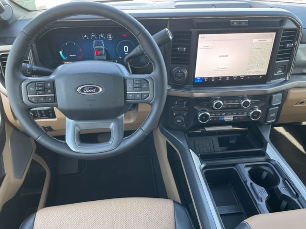 Our Lariat cabin levels up with the rewarding comfort of heated/ventilated leather power front seats, a heated leather power steering wheel, dual-zone automatic climate control, power-adjustable pedals, 120V/400W outlets, and a power sliding rear window. The interior is also like a mobile command post with a 12-inch touchscreen, a 12-inch driver display, connected navigation compatibility, wireless charging, WiFi compatibility, advanced phone connectivity, voice recognition, and our Ultimate Pack for B&O Unleashed audio.