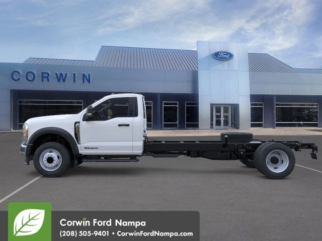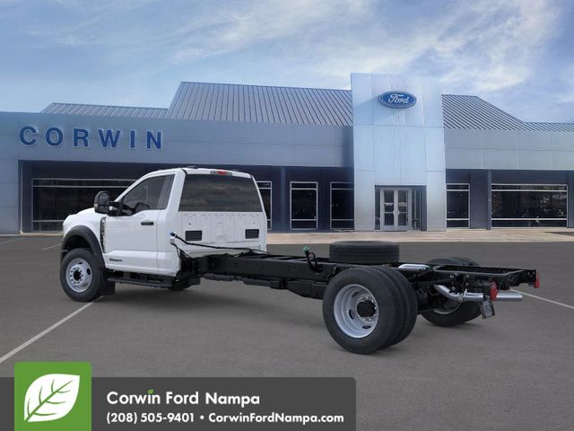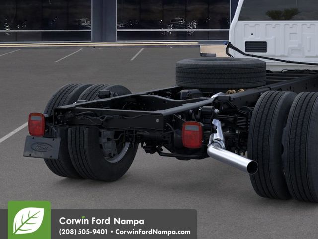 Ready for work, our diesel-driven 2025 Ford F-600 XL Regular Cab Chassis Cab 4X4 is commanding and capable in Oxford White! Motivated by a TurboCharged 6.7 Liter PowerStroke V8 supplying 330hp and 950lb-ft of torque to a 10 Speed Automatic transmission with selectable drive modes. Heavy-duty shocks are standard for confident handling even under heavy loads, and this Four Wheel Drive truck shows off a fierce Ford face. Our F-600's bold grille complements LED roof-clearance lights, quad halogen headlamps, a black steel front bumper, front tow hooks, and heated power trailering mirrors. A strong steel frame provides a great foundation for upfitting!