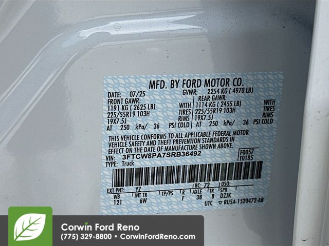 See us today at Corwin Ford Reno or call us at (775) 329-8800. Family owned for over 100 years! Excellent selection of New and Used vehicles, Financing options. Serving Reno, Carson City, Sparks, the North Valleyâs, Spanish Springs, Verdi, Virginia City, the Carson Valley, and Northern Nevada. *All Prices plus applicable sales tax, and a license, and documentary service fee of $627.75 will be added to sales price or capitalized cost of the vehicle. One vehicle unless otherwise noted and subject to prior sale without notice. While supplies last. EPA mileage estimates are for newly manufactured vehicles only. Your actual mileage will vary depending on how you drive and maintain your vehicle. Rebates included: $1000 - Final Days Mega Bonus Cash. Exp. 01/02/2026 $1000 - Retail Customer Cash. Exp. 01/05/2026 $1000 - Retail Customer Cash. Exp. 01/05/2026