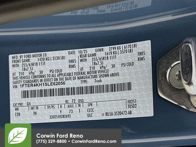 See us today at Corwin Ford Reno or call us at (775) 329-8800. Family owned for over 100 years! Excellent selection of New and Used vehicles, Financing options. Serving Reno, Carson City, Sparks, the North Valleyâs, Spanish Springs, Verdi, Virginia City, the Carson Valley, and Northern Nevada. *All Prices plus applicable sales tax, and a license, and documentary service fee of $627.75 will be added to sales price or capitalized cost of the vehicle. One vehicle unless otherwise noted and subject to prior sale without notice. While supplies last. EPA mileage estimates are for newly manufactured vehicles only. Your actual mileage will vary depending on how you drive and maintain your vehicle. Rebates included: $1000 - Final Days Mega Bonus Cash. Exp. 01/02/2026 $2000 - Bonus Customer Cash. Exp. 01/05/2026