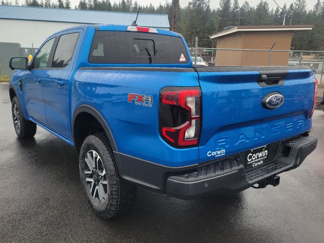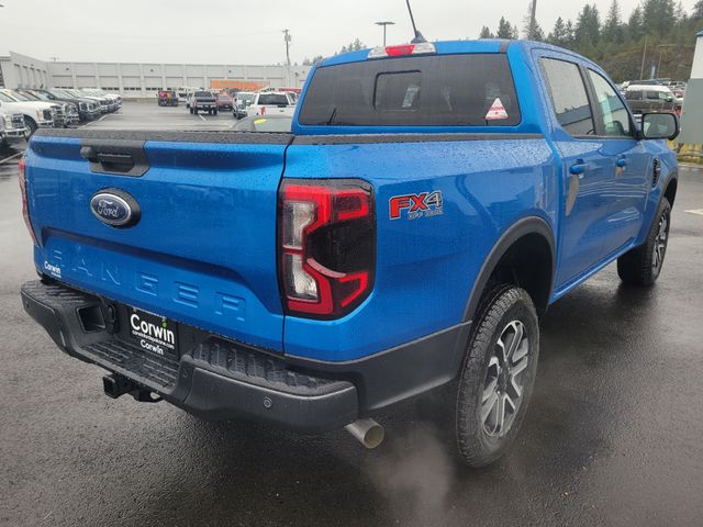 Recent Arrival! Our 2025 Ford Ranger Lariat SuperCrew 4X4 with the FX4 Off-Road Package combines modern muscle and smart technology in Velocity Blue Metallic! Powered by a TurboCharged 2.3 Liter EcoBoost 4 Cylinder generating 270hp for a 10 Speed SelectShift Automatic transmission to help make tough challenges feel easy. This Four Wheel Drive truck can inspire confidence with the FX4 Off-Road Pack's electronic locking rear differential, trail control, off-road tuned shocks, composed handling, and achieve nearly 25mpg on the highway. Our Ranger is ready to rock with its LED lighting, fog lamps, zone/cargo-bed lighting, a steel rear bumper, a power-locking tailgate, a 120V/400W outlet, alloy wheels, and heated power mirrors.