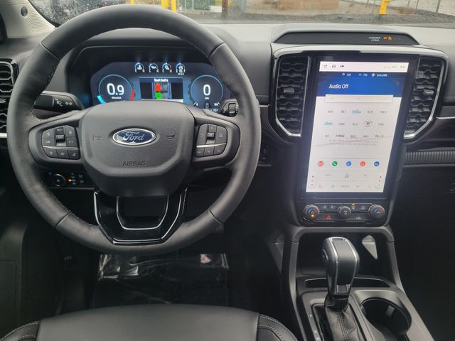 Recent Arrival! Our 2025 Ford Ranger Lariat SuperCrew 4X4, equipped with the FX4 Off-Road Package, moves with confident capability in Shadow Black. Powered by a TurboCharged 2.3 Liter EcoBoost 4 Cylinder generating 270hp for a 10 Speed SelectShift Automatic transmission to help make tough challenges feel easy. This Four Wheel Drive truck can inspire confidence with the FX4 Off-Road Pack's electronic locking rear differential, trail control, off-road tuned shocks, composed handling, and achieve nearly 25mpg on the highway. Our Ranger is ready to rock with its LED lighting, fog lamps, zone/cargo-bed lighting, a steel rear bumper, a power-locking tailgate, a 120V/400W outlet, alloy wheels, black running boards, and heated power mirrors.