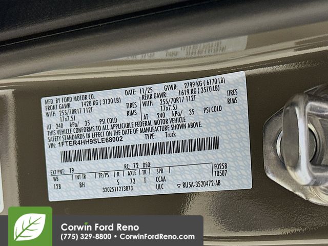 See us today at Corwin Ford Reno or call us at (775) 329-8800. Family owned for over 100 years! Excellent selection of New and Used vehicles, Financing options. Serving Reno, Carson City, Sparks, the North Valleyâs, Spanish Springs, Verdi, Virginia City, the Carson Valley, and Northern Nevada. *All Prices plus applicable sales tax, and a license, and documentary service fee of $627.75 will be added to sales price or capitalized cost of the vehicle. One vehicle unless otherwise noted and subject to prior sale without notice. While supplies last. EPA mileage estimates are for newly manufactured vehicles only. Your actual mileage will vary depending on how you drive and maintain your vehicle. Rebates included: $1000 - Final Days Mega Bonus Cash. Exp. 01/02/2026 $2000 - Bonus Customer Cash. Exp. 01/05/2026