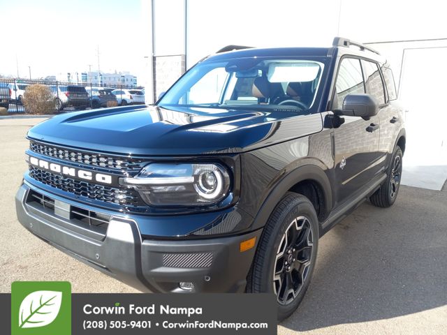Our 2026 Ford Bronco Sport Outer Banks 4X4 with the Tech Pack in Shadow Black is here to help your inner explorer roam free! Motivated by a TurboCharged 1.5 Liter EcoBoost 3 Cylinder supplying 181hp to an 8 Speed Automatic transmission engineered for real-world capability. This Four Wheel Drive SUV also lets you fine-tune performance with a multi-mode terrain system, and it returns nearly 28mpg on the highway. Rugged and distinctive, our Bronco Sport looks good on the road or off with a stylish Shadow Black roof, LED lighting, fog lamps, a flip-up rear window, and alloy wheels.