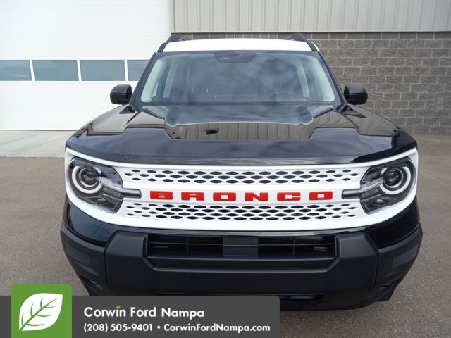 Our 2026 Ford Bronco Sport Heritage 4X4 can help express your bold spirit of adventure in Shadow Black! Motivated by a TurboCharged 1.5 Liter EcoBoost 3 Cylinder generating 181hp for an 8 Speed Automatic transmission for intelligent capability owners love. Engineered with multiple modes to help you go over any terrain, this Four Wheel Drive SUV sees nearly 29mpg on the highway with a retro-themed exterior. Check out the white-painted safari-style roof, white alloy wheels, LED lighting, exclusive decals, roof rails, and a rear liftgate with built-in floodlights and a flip-up rear glass.