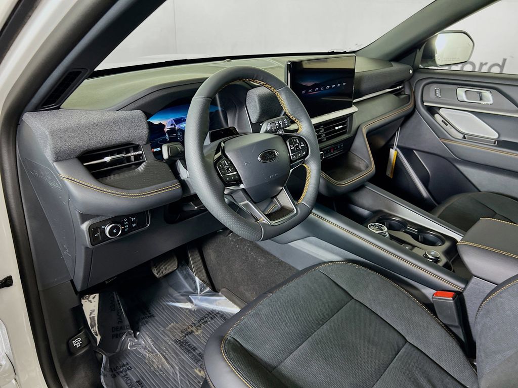 Our 2026 Ford Explorer Tremor 4WD with the Ultimate Package in Star White Metallic Tri-Coat delivers rugged suspension, all-terrain confidence, and bold style for off-road family adventures. Powered by a TurboCharged 3.0 Liter EcoBoost V6 offering 400hp to a 10 Speed Automatic transmission with seven drive modes. Take off with terrain management to be ready for the rough stuff, and this Four Wheel Drive SUV returns nearly 27mpg on the highway. Strong lines give our Explorer a muscular look to complement its LED lighting, power liftgate, taller ride height, roof rails, front skid-plate trim, all-terrain tires, alloy wheels, and body cladding with Tremor badges.