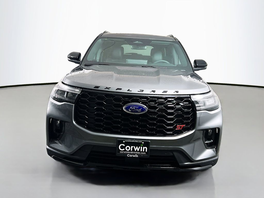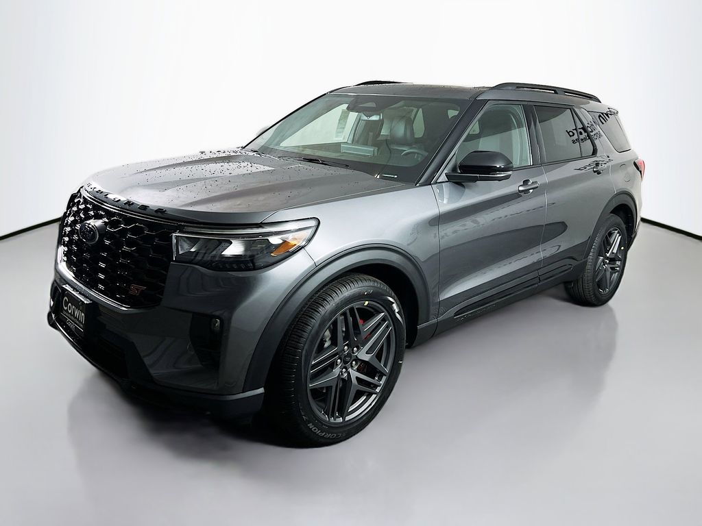 Bold and athletic, our 2026 Ford Explorer ST 4WD in Carbonized Gray Metallic blends dynamic design with all-weather capability. Powered by a Twin-TurboCharged 3.0 Liter EcoBoost V6 serving up 400hp to a paddle-shifted 10 Speed Automatic transmission for premium performance. A sport-tuned suspension and Terrain Management help your family take on tricky trails and twisty roads, and this Four Wheel Drive SUV sees nearly 24mpg on the highway. Showing a confident style all its own, our Explorer boasts LED lighting, quad exhaust outlets, a power liftgate, sunroof, 20-inch wheels, roof rails, and black accents. Be ready to turn heads in this bold SUV!
