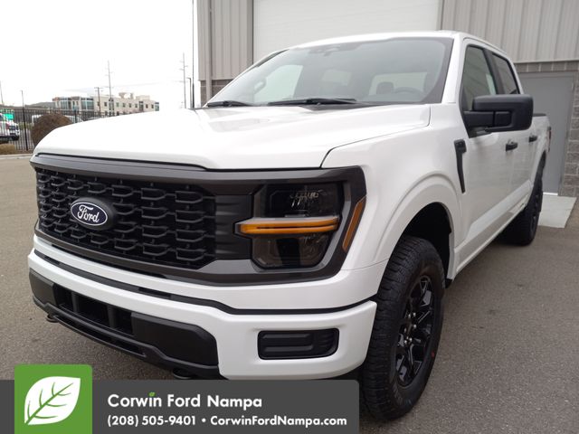 Our bold 2026 Ford F-150 STX SuperCrew 4X4 stands tall in Oxford White! Powered by a Twin-TurboCharged 2.7 Liter EcoBoost V6 delivering 325hp to a 10 Speed SelectShift Automatic transmission with dynamic drive modes. This Four Wheel Drive truck is also well-prepared for pulling and easy to maneuver, and it returns nearly 25mpg with calm composure on the highway. Our Ford F-150 is fierce and functional, with LED lighting, fender vents, 18-inch black alloy wheels, heated mirrors, and a roomy cargo bed.