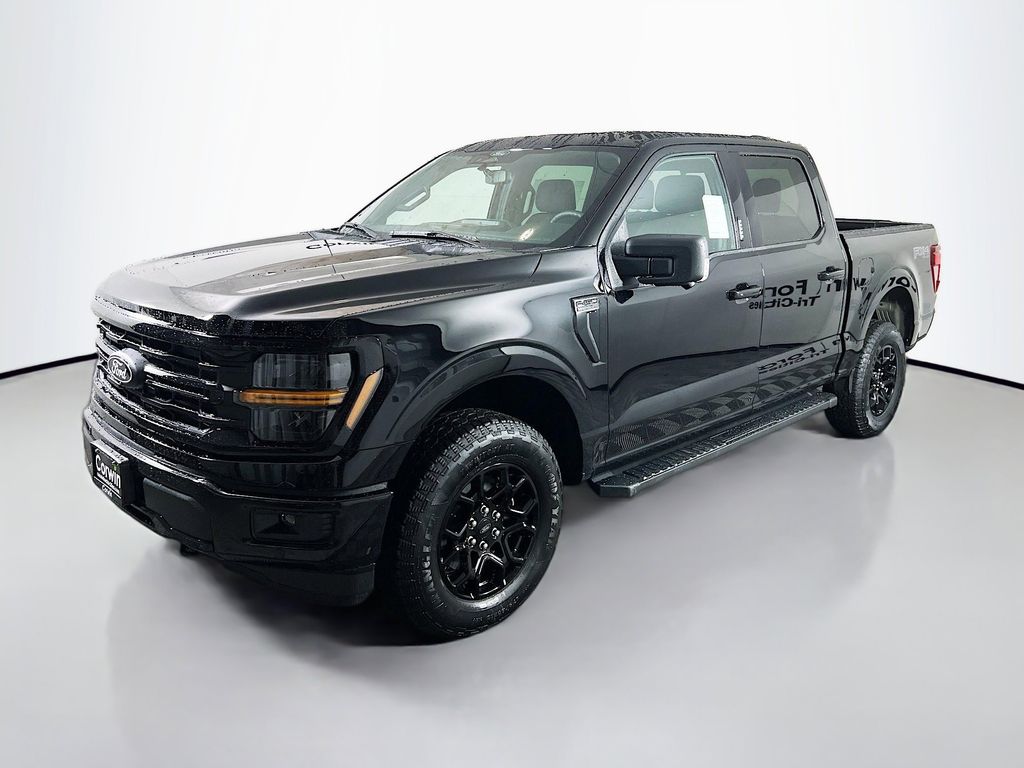 Our 2026 Ford F-150 XLT SuperCrew 4X4 with the FX4 Off-Road and Black Appearance Packages in Agate Black Metallic has one job to do: Satisfy your demands! Powered by a Twin-TurboCharged 3.5 Liter EcoBoost V6 delivering 400hp to a 10 Speed SelectShift Automatic transmission for rugged performance. This Four Wheel Drive truck also welcomes our FX4 Off-Road Pack to boost its capability with hill-descent control, an electronic locking differential, and Ford's Rock Crawl mode, and it returns nearly 24mpg on the highway. Additional dynamic details include LED lighting, fog lamps, painted bumpers, 18-inch Gloss Black wheels, cast aluminum running boards, a Class IV trailer hitch, and FX4 upgrades like skid plates and a bodyside decal.