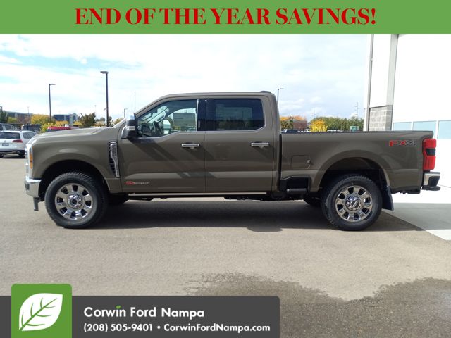 Our diesel-powered 2026 Ford F-250 Lariat Crew Cab 4X4 with FX4 Off-Road Pack can get jobs done with strength, intelligence, and a bold Marsh Gray design! Motivated by a TurboCharged 6.7 Liter High Output PowerStroke Diesel V8 offering 500hp and 1200lb-ft of torque to a 10 Speed Automatic transmission. A robust suspension helps this Four Wheel Drive truck make the most of its impressive towing and payload ratings, and it looks fantastic. Our F-250 shows off LED lighting, fog lamps, PowerScope trailer mirrors with built-in spotlights, alloy wheels, chrome bumpers, a sunroof, and a power-lock/remote-release tailgate.