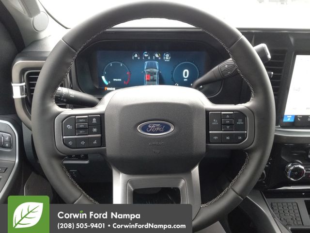Our Lariat cabin is comfortably equipped for hard work with heated/ventilated leather power front seats, a heated leather power steering wheel, dual-zone automatic climate control, power-adjustable pedals, 120V/400W outlets, and a power sliding rear window. Your tech tools include a 12-inch touchscreen, a 12-inch driver display, connected navigation, Apple CarPlay/Android Auto, WiFi compatibility, Bluetooth, voice recognition, wireless charging, and B&O audio.