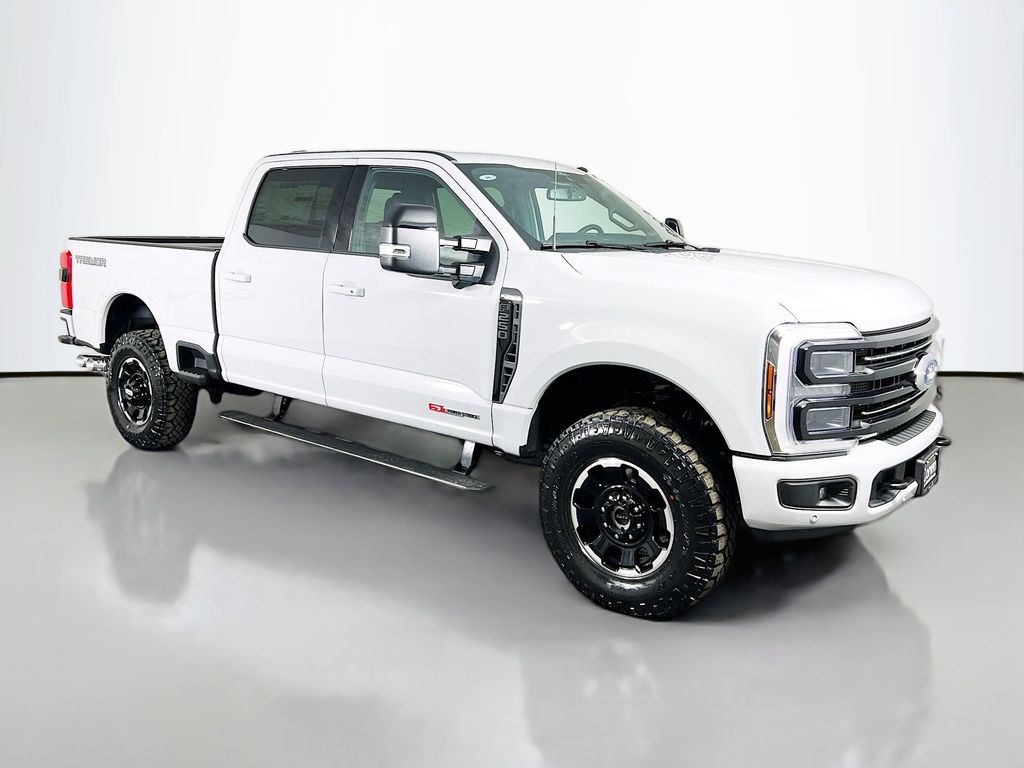 Our Diesel-powered 2026 Ford F-250 Super Duty Platinum Crew Cab 4X4 with the Tremor Off-Road Pack conquers large jobs with lavish luxury in Avalanche! Motivated by a TurboCharged 6.7 Liter PowerStroke High Output Diesel V8 supplying 500hp and 1200lb-ft of torque to a 10 Speed Automatic transmission with our impressive Tremor Pack. It helps our Four Wheel Drive truck reach more challenges with an increased ride height, a revised rear-axle ratio, front/rear differentials, off-road running boards, skid plates, water-fording tubes, Rock Crawl/Trail Control modes, and aggressive 18-inch alloy wheels. Additional functionality is available with a Pro Power Onboard generator, built-in payload/trailer-tongue scales, a power tailgate, a twin-panel sunroof, and PowerScope mirrors.