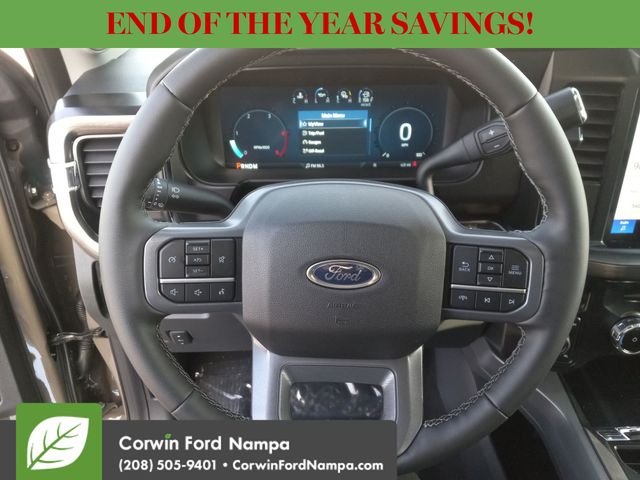 Our Lariat cabin is comfortably equipped for hard work with heated/ventilated leather power front seats, a heated leather power steering wheel, dual-zone automatic climate control, power-adjustable pedals, 120V/400W outlets, and a power sliding rear window. Your tech tools include a 12-inch touchscreen, a 12-inch driver display, connected navigation, Apple CarPlay/Android Auto, WiFi compatibility, Bluetooth, voice recognition, wireless charging, and B&O audio.