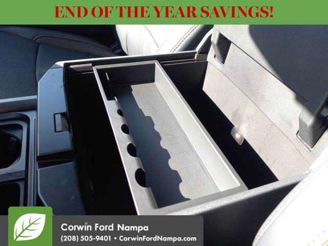 Our Lariat cabin lets you stay comfortable even when hard at work, thanks to heated/ventilated leather power front seats, a heated leather power steering wheel, dual-zone automatic climate control, power-adjustable pedals, 120V/400W outlets, and a power sliding rear window. Your tech tools include a 12-inch touchscreen, a 12-inch driver display, connected navigation, Apple CarPlay/Android Auto, WiFi compatibility, Bluetooth, voice recognition, wireless charging, and B&O audio.