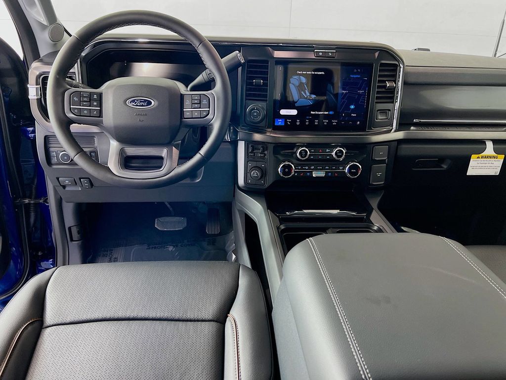 Our Lariat cabin levels up with the rewarding comfort of a twin panel moonroof, heated/ventilated leather power front seats, a heated leather power steering wheel, dual-zone automatic climate control, power-adjustable pedals, 120V/400W outlets, and a power sliding rear window. The interior resembles a mobile command post with a 12-inch touchscreen, a 12-inch driver display, connected navigation, wireless charging, WiFi compatibility, Apple CarPlay/Android Auto, Bluetooth, voice recognition, and B&O audio.