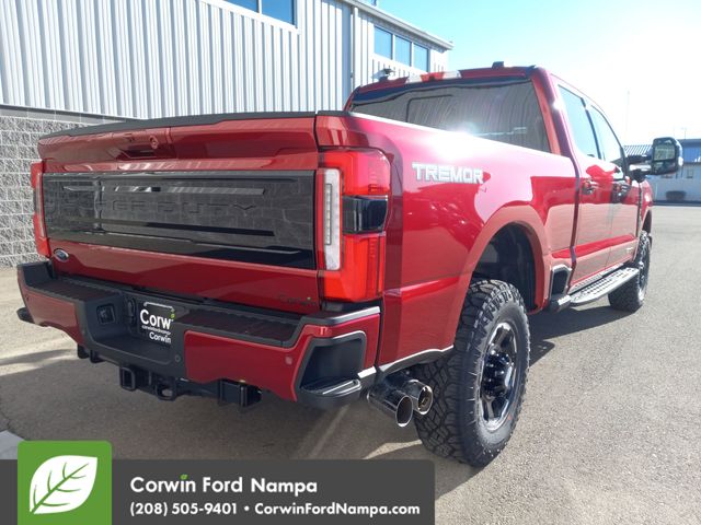 Our diesel-powered 2026 Ford F-250 Platinum Crew Cab 4X4 conquers large jobs with lavish luxury in Ruby Red Metallic Tinted Clearcoat! Motivated by a TurboCharged 6.7 Liter PowerStroke High Output Diesel V8 supplying 500hp and 1200lb-ft of torque to a 10 Speed Automatic transmission for mighty strength. Features like a Pro Power Onboard generator, built-in payload/trailer-tongue scales, a power tailgate, power running boards, LED lighting, 20-inch alloy wheels, and PowerScope mirrors help our Four Wheel Drive F-250 look good and work strong.