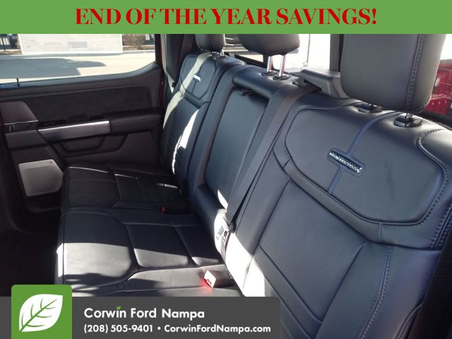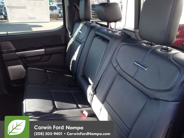 Our Platinum cabin from Ford helps you stay comfortable with heated/ventilated leather power front and heated rear seats, a heated leather power steering wheel, dual-zone automatic climate control, power-adjustable pedals, and a power sliding rear window. Digitally dominate the daily grind with a 12-inch touchscreen, a 12-inch productivity screen, connected navigation, Apple CarPlay/Android Auto, wireless charging, WiFi compatibility, Bluetooth, voice control, and B&O Unleashed audio by Bang & Olufsen.
