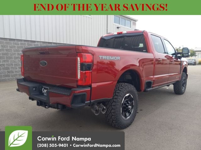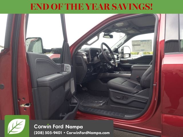 Our diesel-powered 2026 Ford F-250 Lariat Crew Cab 4X4 with the Black Appearance Package can get jobs done with strength, intelligence, and a bold Ruby Red Metallic Tinted Clearcoat design! Motivated by a TurboCharged 6.7 Liter High Output PowerStroke Diesel V8 offering 500hp and 1200lb-ft of torque to a 10 Speed Automatic transmission. A robust suspension helps this Four Wheel Drive truck make the most of its impressive towing and payload ratings, and it looks fantastic. Our F-250 shows off the Black Appearance Pack's rear wheel well liners, spray-on Bedliner, LED lighting, fog lamps, PowerScope trailer mirrors with built-in spotlights, alloy wheels, chrome bumpers, and a power-lock/remote-release tailgate.