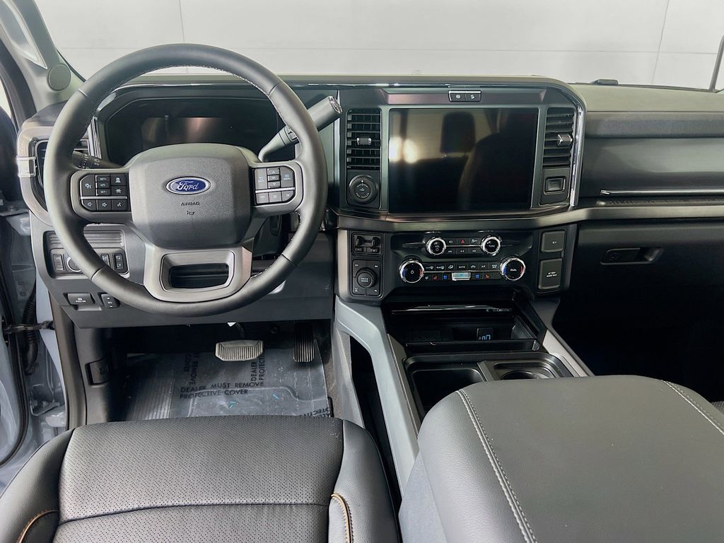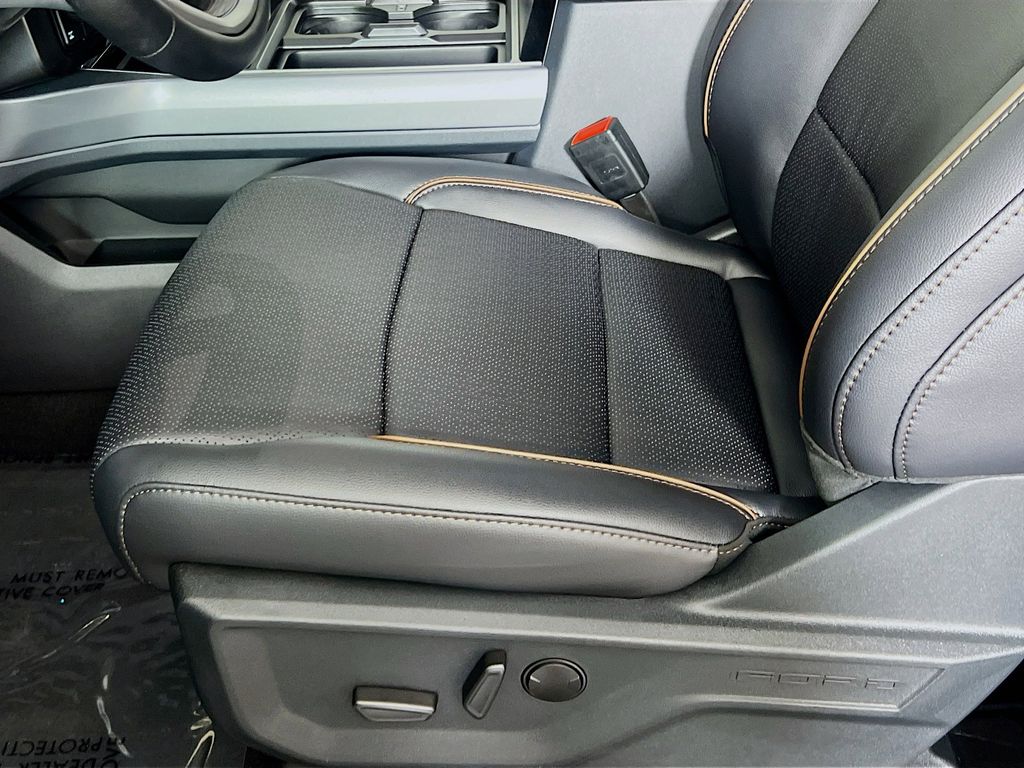 Our Lariat cabin levels up with the rewarding comfort of heated/ventilated leather power front seats, a heated leather power steering wheel, dual-zone automatic climate control, power-adjustable pedals, 120V/400W outlets, and a power sliding rear window. The interior resembles a mobile command post with a 12-inch touchscreen, a 12-inch driver display, connected navigation, wireless charging, WiFi compatibility, Apple CarPlay/Android Auto, Bluetooth, voice recognition, and B&O audio.