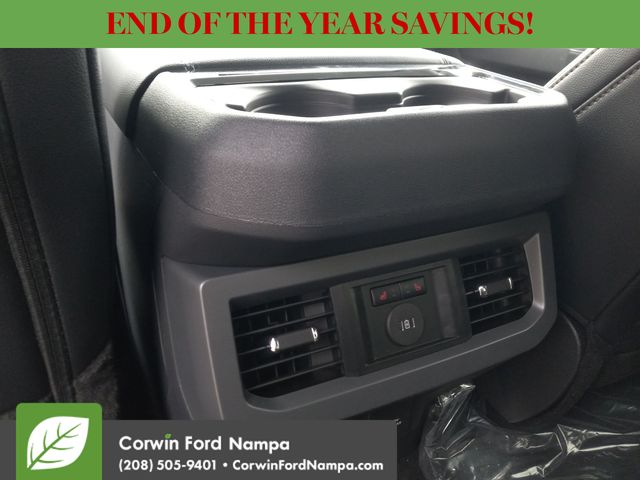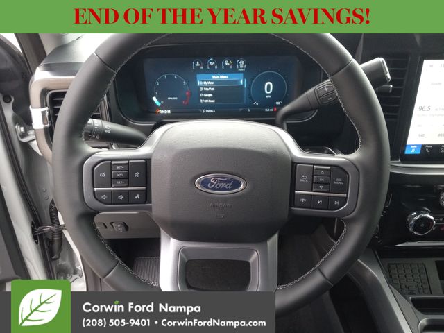 Our Lariat cabin levels up with the rewarding comfort of heated/ventilated leather power front seats, a heated leather power steering wheel, dual-zone automatic climate control, power-adjustable pedals, 120V/400W outlets, and a power sliding rear window. The interior resembles a mobile command post with a 12-inch touchscreen, a 12-inch driver display, connected navigation, wireless charging, WiFi compatibility, Apple CarPlay/Android Auto, Bluetooth, voice recognition, and B&O audio.