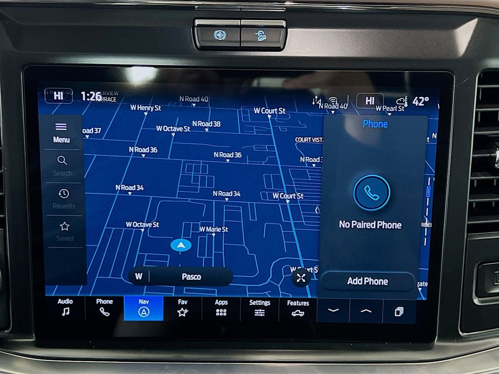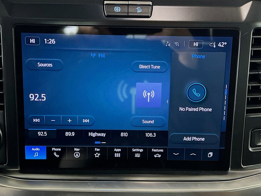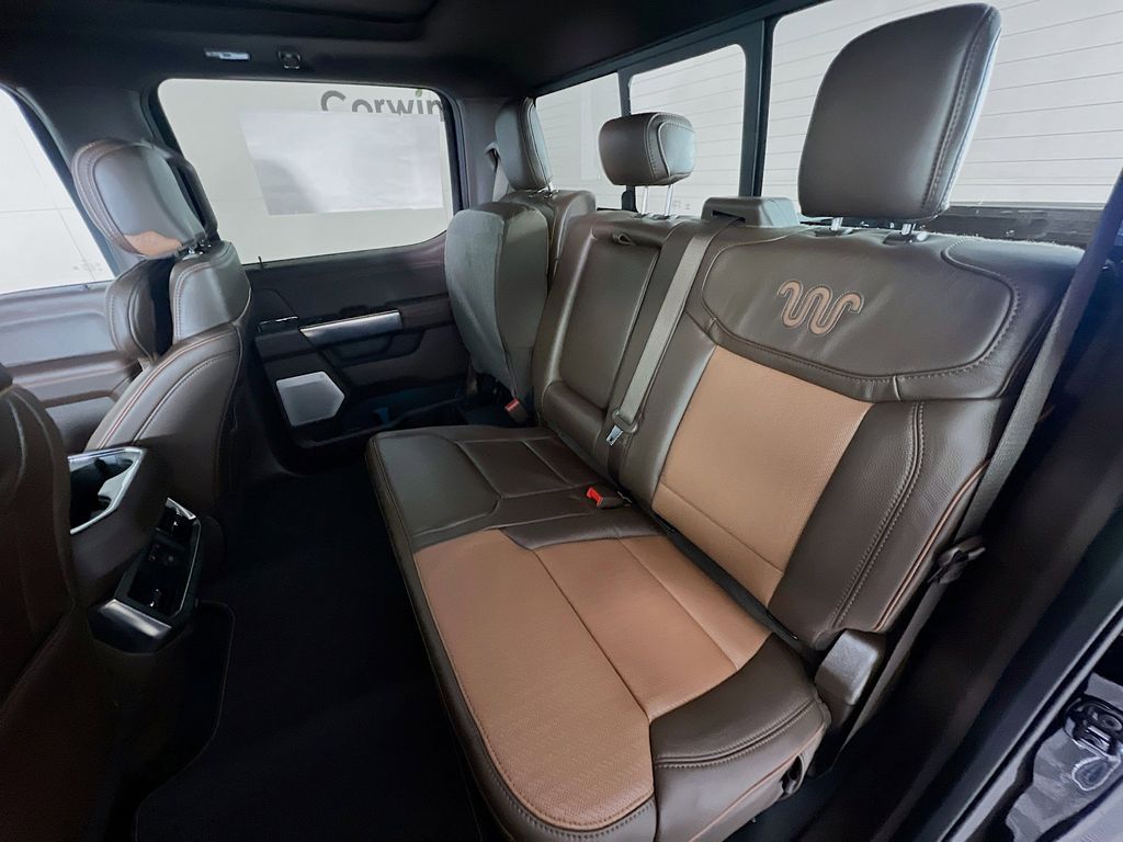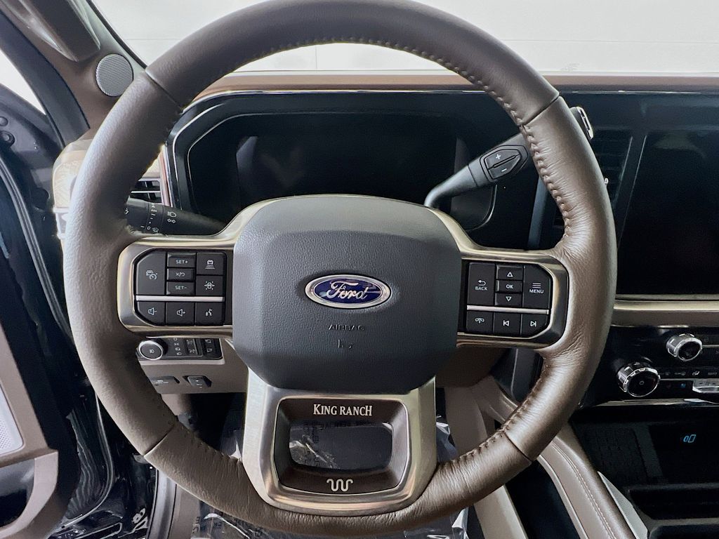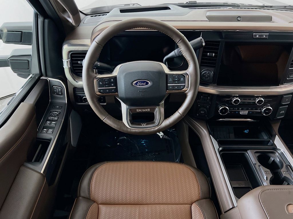 Distinctive Kingsville leather heated/ventilated power front seats and heated rear seats define our King Ranch cabin, complemented by a twin panel sunroof, a heated Kingsville leather power steering wheel, dual-zone automatic climate control, power-adjustable pedals, and a power sliding rear window. Powerful technologies enhance every drive with a 12-inch touchscreen, a 12-inch driver display, connected navigation compatibility, wireless charging, WiFi capability, wireless Apple CarPlay and Android Auto, voice recognition, and the premium B&O Unleashed sound system for an immersive listening experience.
