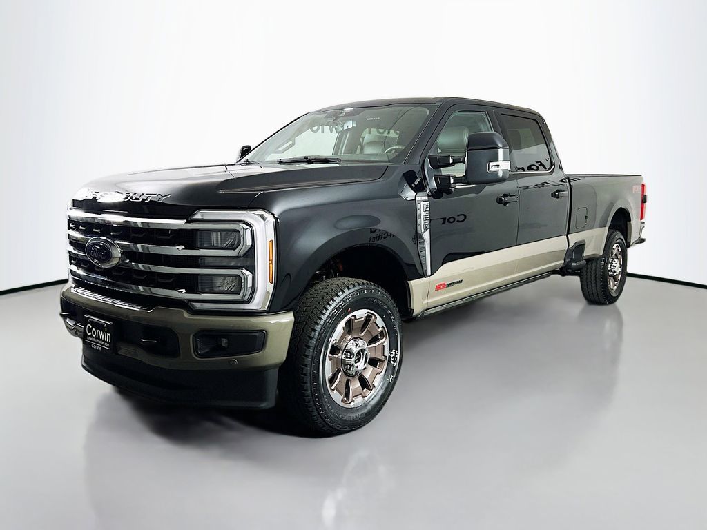Distinctive and refined, our diesel-powered 2026 Ford F-350 Super Duty King Ranch Crew Cab 4X4 in Agate Black Metallic blends Western-inspired luxury with commanding presence. Motivated by a TurboCharged 6.7 Liter High Output PowerStroke Diesel V8 supplying 500hp and 1200lb-ft of torque to a 10 Speed Automatic transmission. This Four Wheel Drive truck can easily handle tough conditions on the way to work, and a Pro Power Onboard generator lets you plug in your tools when you get there. Our Ford F-350 turns heads with LED lighting, fog lamps, a power tailgate, power running boards, alloy wheels, and Ford's PowerScope trailer mirrors.