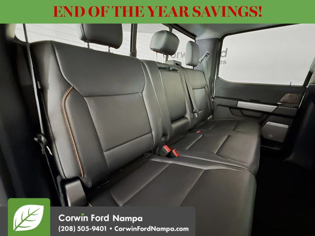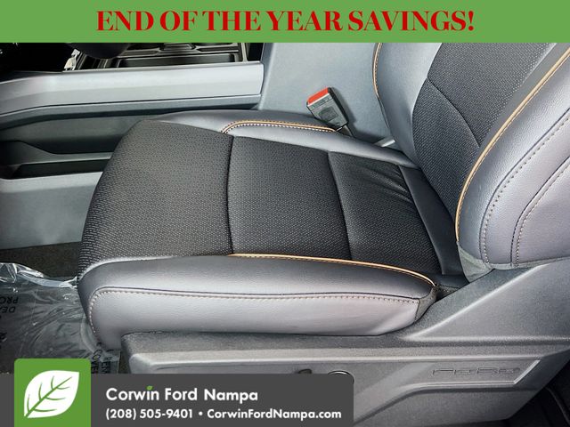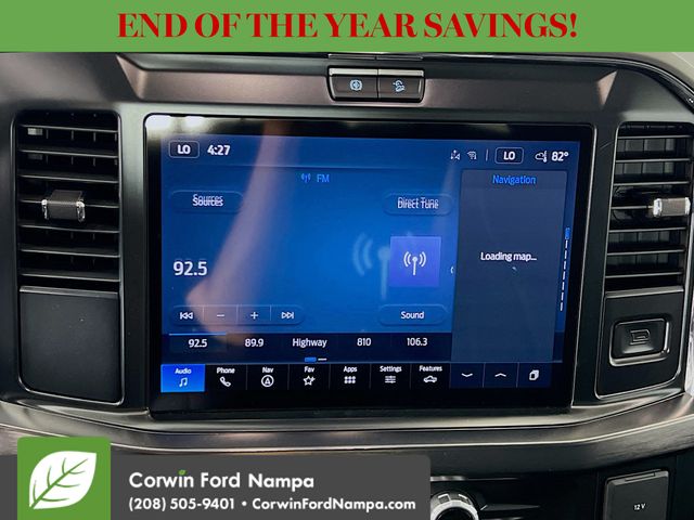 The Ford-built Lariat cabin delivers rewarding comfort with heated/ventilated leather power front seats, a heated leather power steering wheel, dual-zone automatic climate control, power-adjustable pedals, 120V/400W outlets, and a power sliding rear window. The tech-focused interior features a 12-inch touchscreen, a 12-inch driver display, connected navigation, wireless charging, WiFi compatibility, Apple CarPlay/Android Auto, Bluetooth, voice recognition, and a B&O sound system.