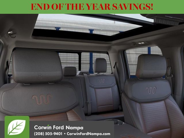 Distinctive Kingsville leather heated/ventilated power front seats and heated rear seats define our King Ranch cabin, complemented by a heated Kingsville leather power steering wheel, dual-zone automatic climate control, power-adjustable pedals, and a power sliding rear window. Powerful technologies enhance every drive with a 12-inch touchscreen, a 12-inch driver display, connected navigation compatibility, wireless charging, WiFi capability, wireless Apple CarPlay and Android Auto, voice recognition, and the premium B&O Unleashed sound system for an immersive listening experience.