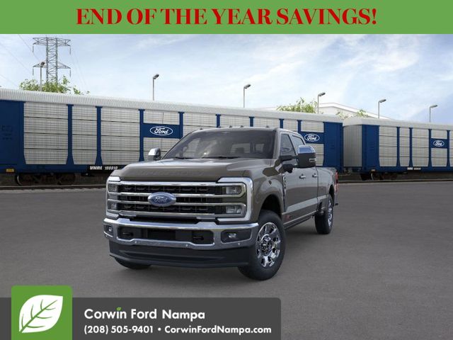 Distinctive and refined, our diesel-powered 2026 Ford F-350 King Ranch Crew Cab 4X4 in Darkened Bronze Metallic blends Western-inspired luxury with commanding presence. Motivated by a TurboCharged 6.7 Liter High Output PowerStroke Diesel V8 supplying 500hp and 1200lb-ft of torque to a 10 Speed Automatic transmission. This Four Wheel Drive truck can easily handle tough conditions on the way to work, and a Pro Power Onboard generator lets you plug in your tools when you get there. Our Ford F-350 turns heads with LED lighting, fog lamps, a power tailgate, power running boards, alloy wheels, and Ford's PowerScope trailer mirrors.