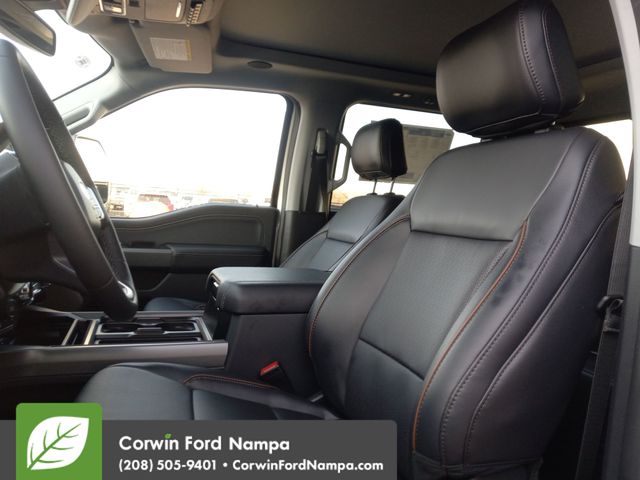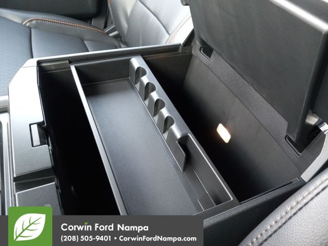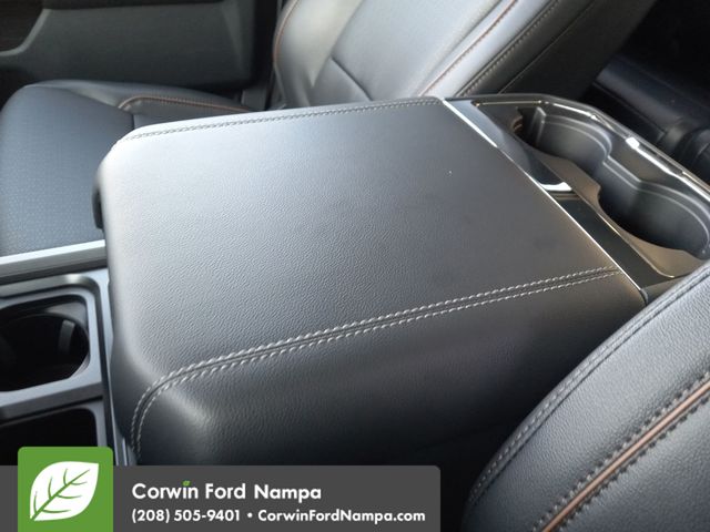 The Ford-built Lariat cabin delivers rewarding comfort with heated/ventilated leather power front seats, a heated leather power steering wheel, dual-zone automatic climate control, power-adjustable pedals, 120V/400W outlets, and a power sliding rear window. The tech-focused interior features a 12-inch touchscreen, a 12-inch driver display, connected navigation, wireless charging, WiFi compatibility, Apple CarPlay/Android Auto, Bluetooth, voice recognition, and a B&O sound system.