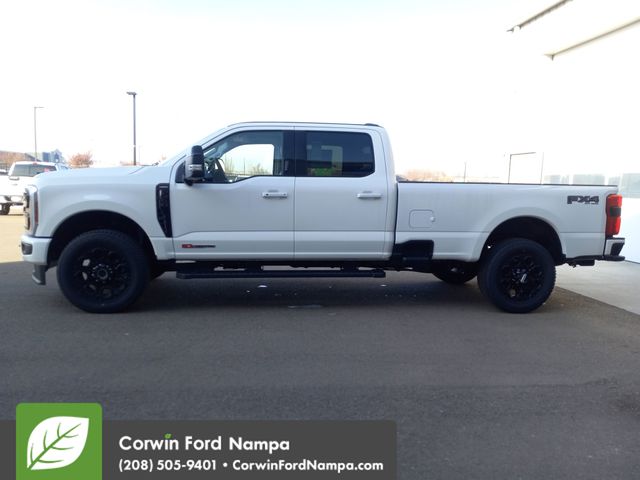 Power through your toughest days with diesel strength and everyday features in our 2026 Ford F-350 Lariat Crew Cab 4X4 with the Black Appearance Package in Star White Metallic Tri-coat. Motivated by a TurboCharged 6.7 Liter High Output PowerStroke Diesel V8 serving up 500hp and 1200lb-ft of torque to a 10 Speed Automatic transmission. This Four Wheel Drive truck complements that muscle with a rugged suspension for an easy ride. Equipped to handle the daily grind, our bold Ford F-350 boasts the Black Appearance Package's rear wheelhouse liners, spray-on Bedliner, 20-inch black wheels, LED lighting, fog lamps, PowerScope trailer mirrors with built-in spotlights, and a power-lock/remote-release tailgate.