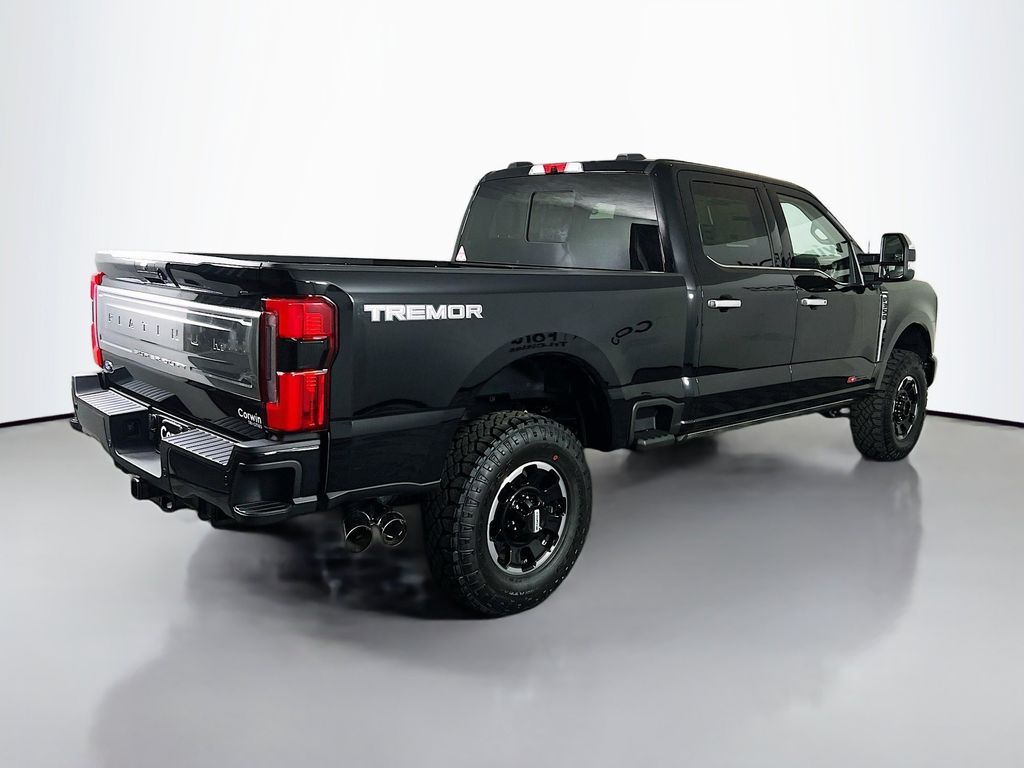 Our diesel powered 2026 Ford F-350 Super Duty Platinum Crew Cab 4X4 with the Tremor Pack handles the hustle and bustle of daily life with premium features and a powerful Agate Black Metallic design! Motivated by a TurboCharged 6.7 Liter High Output PowerStroke Diesel V8 delivering 500hp and 1200lb-ft of torque to a 10 Speed Automatic transmission. This Four Wheel Drive truck also welcomes Tremor upgrades like a raised ride height, a locking rear differential, a limited-slip front differential, Rock Crawl/Trail Control modes, performance shocks, durable skid plates, water-fording vent tubes, and a bold Tremor decal. It's a great complement to our Ford F-350's dominating exterior design.